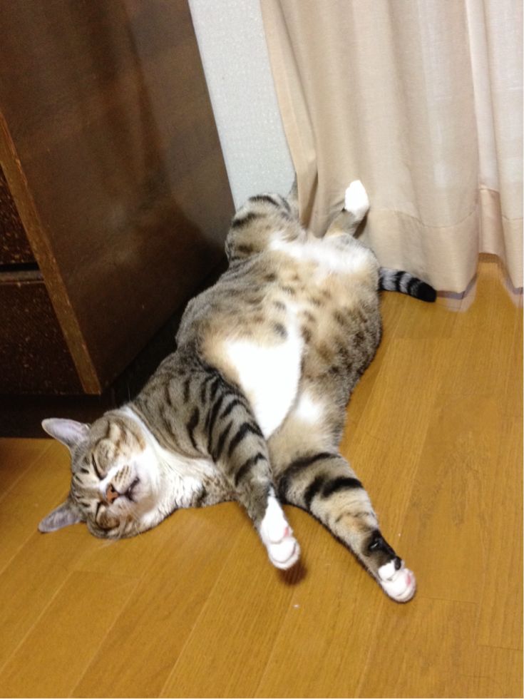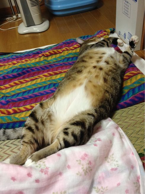土日は暑かったので、猫と一緒にヘソテンでゴロゴロしてた