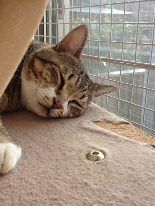 まだ、ねてます。薬飲ませなきゃいけない。起こすのかわいそうだ