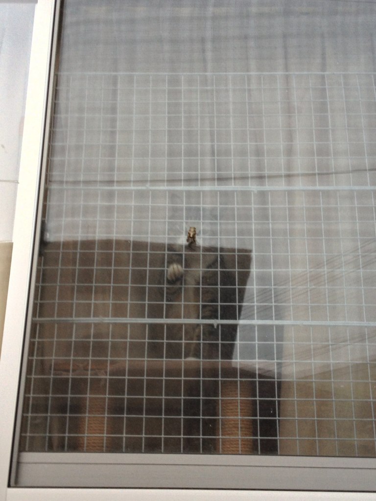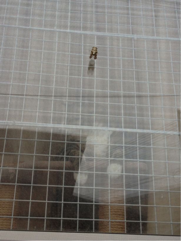 でも、ゆうちゃんは違うのですよ。金網とガラス窓超しに網戸に張り付いた蝉を見つけても慌てない!興味はあるけど、突進したりしない。
