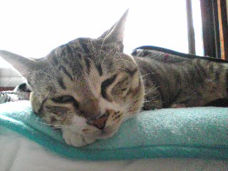 母は布団の上にブルーシートを敷いてます。