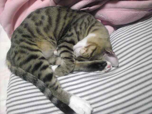 ようやく、落ち着いて私の後ろで寝てます。