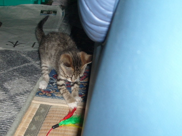 夕方、ケージから出してねこじゃらしで遊んだ。